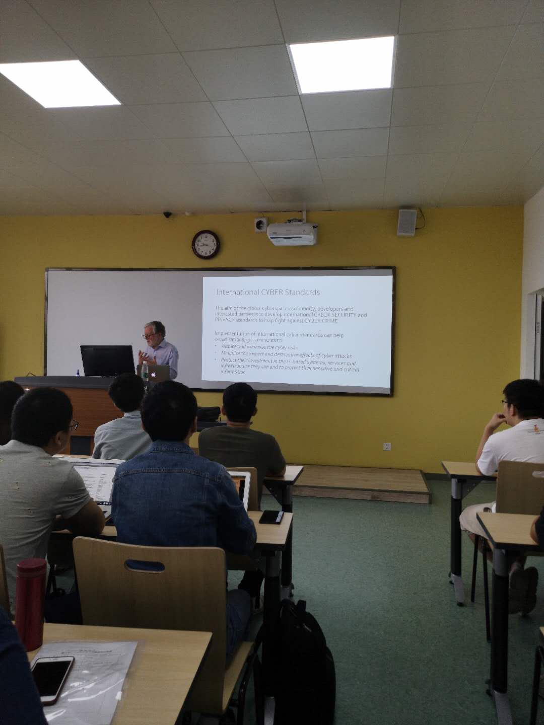 Humphreys教授用他在信息安全和国际标准化领域的长久经验和深刻认识,为公司师生带来了一场内容丰富的学术报告,不仅拓宽了同学们的国际视野,也加深了大家对网络空间安全的认识。报告在热烈的掌声中结束。
