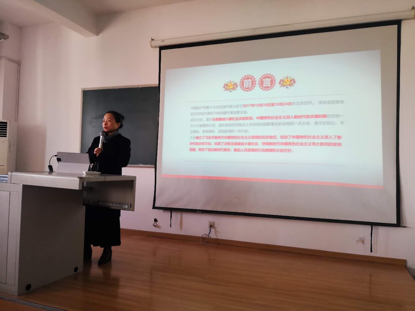 陈经理从认真学习领会党的十九大出发,让英国上市官网365学子理解十九大精神:一、深入理解“不忘初心,牢记使命”;二、深入理解高举中国特色社会主义伟大旗帜;三、深入理解决胜全面建成小康社会;四、为实现中华民族伟大复兴的中国梦不懈奋斗。