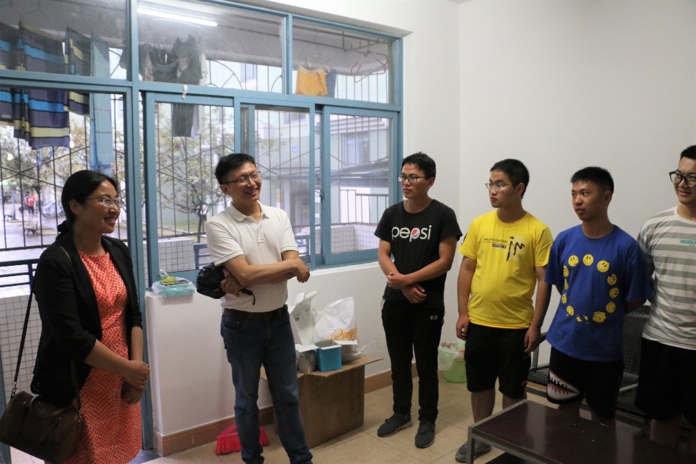 新学期伊始,为了帮助新生尽快适应老员工活,更好地了解新生的情况,2019年8月30日晚,英国上市官网365副经理、直属党支部书记秦燕、副经理杨频和2019级辅导员隋文馨老师来到新生宿舍看望新同学。