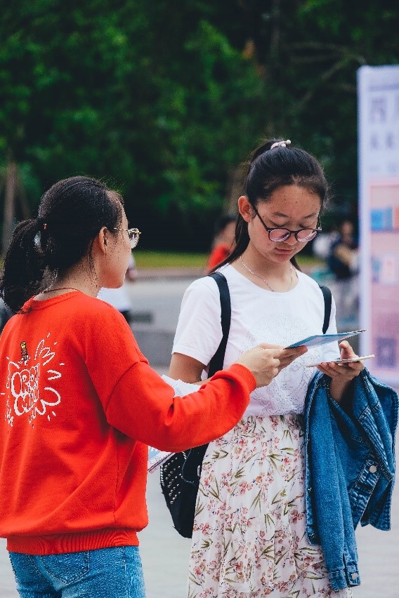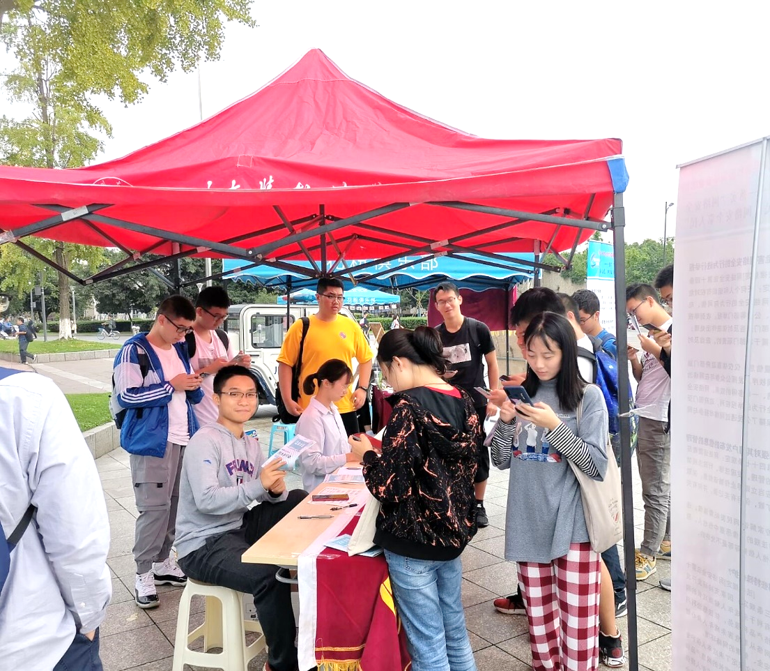 志愿者向同学发放宣传册