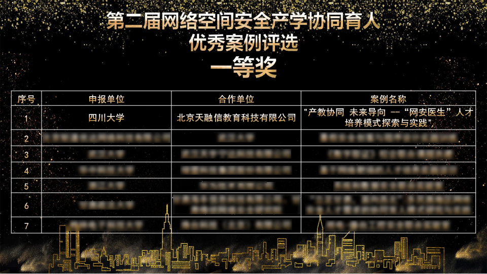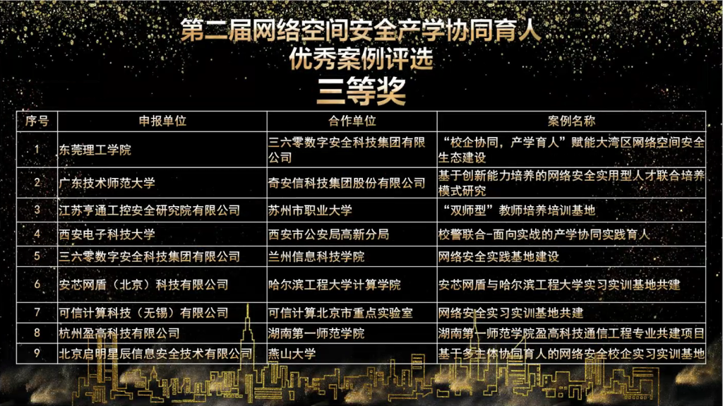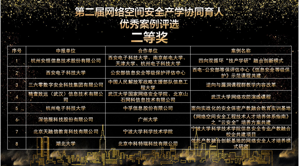 2022年4月16日,由教育部高等公司网络空间安全专业教学指导委员会产学合作育人工作组主办、英国365集团官网与华中科技大学共同承办的“第二届网络空间安全产学协同育人优秀案例评选会”召开了线上会议。公司和天融信科技集团合作的《产教协同·未来导向-“网安医生”人才培养模式探索与实践》产学协同育人的案例以排名第一荣获一等奖。