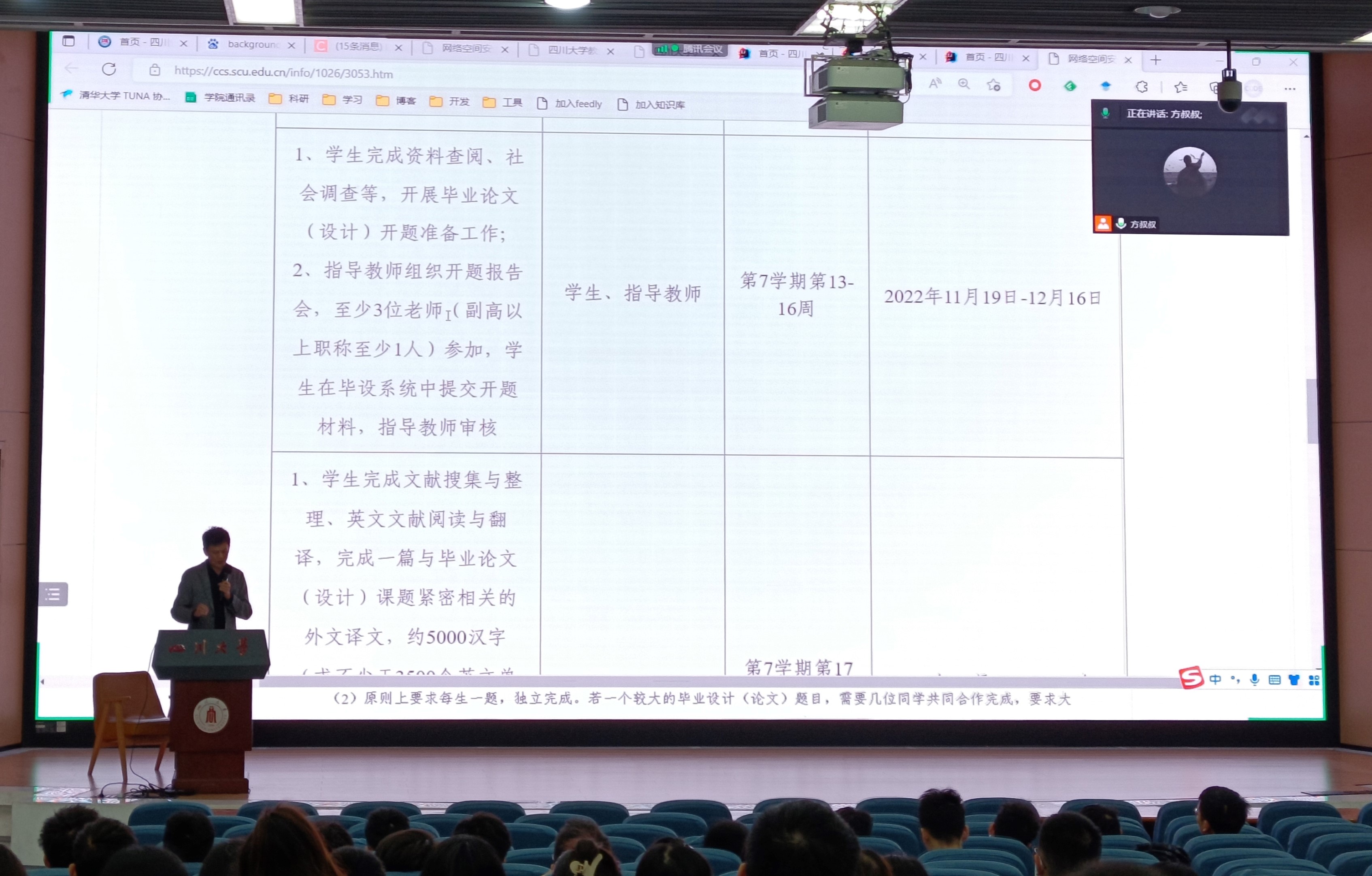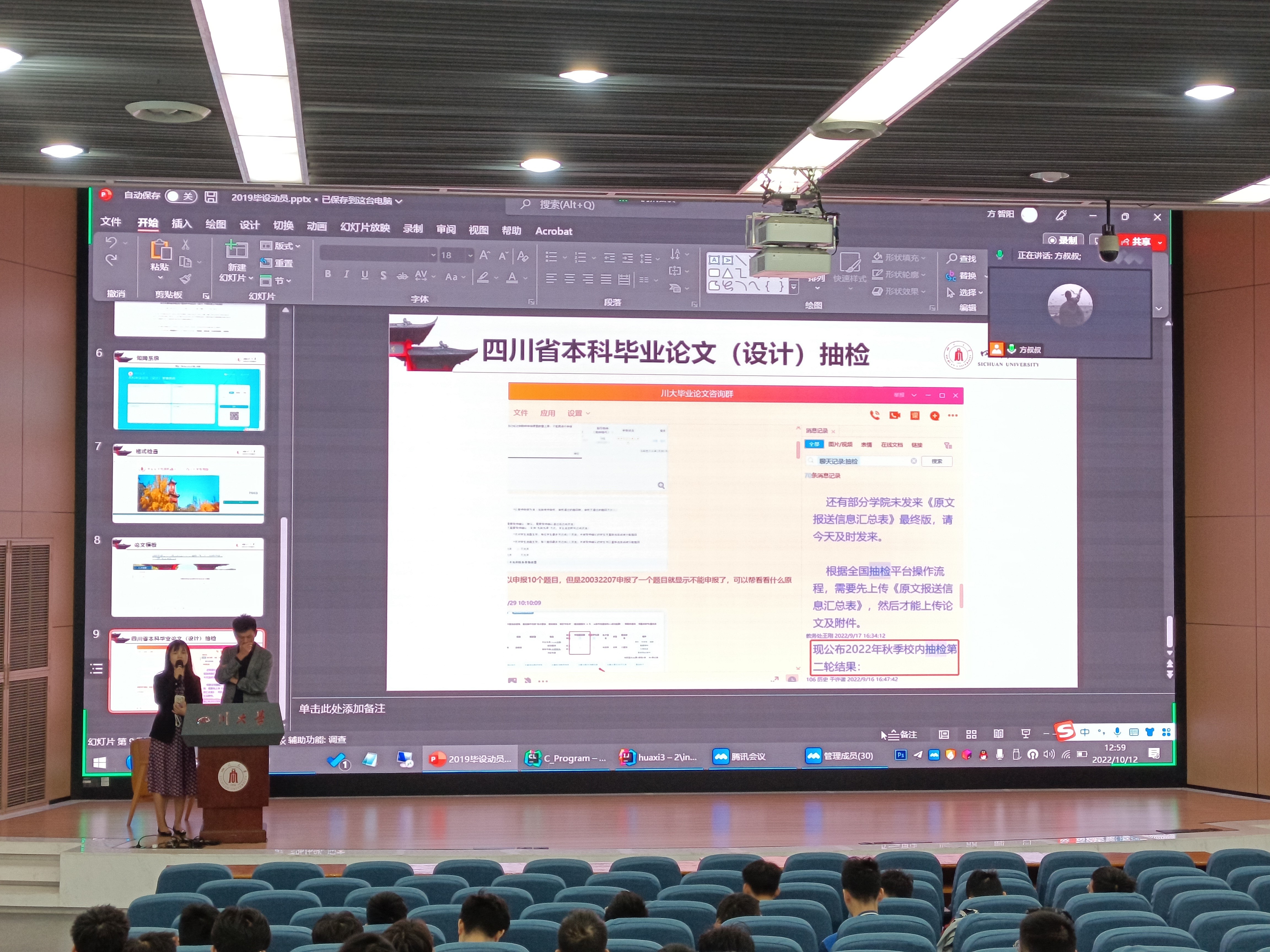 2022年10月12日中午,英国上市官网3652019级本科毕业论文(设计)启动会在江安校区一教A座水上报告厅顺利召开。公司教学科方智阳老师、何露老师以及2019级全体毕业生参加了本次启动会。
