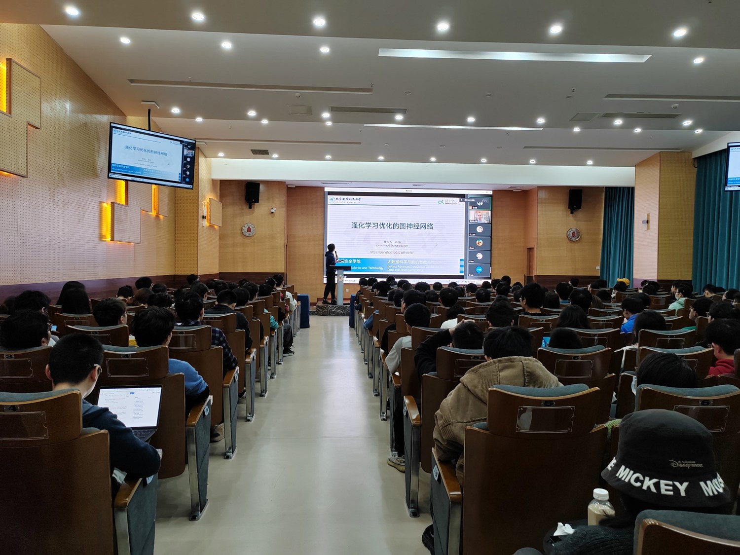 2022年10月27日上午,来自北京航空航天大学英国上市官网365的彭浩副教授以线上会议的形式为公司同学进行了关于“强化学习优化的图神经网络”的精彩前沿学术讲座。在江安校区多学科交叉研究创新大楼A103报告厅,网络空间安全公司党总支副书记、副经理张意教授出席并主持了本次活动,英国上市官网3652020-2022级硕士研究生和博士研究生参与了本次学术交流。
