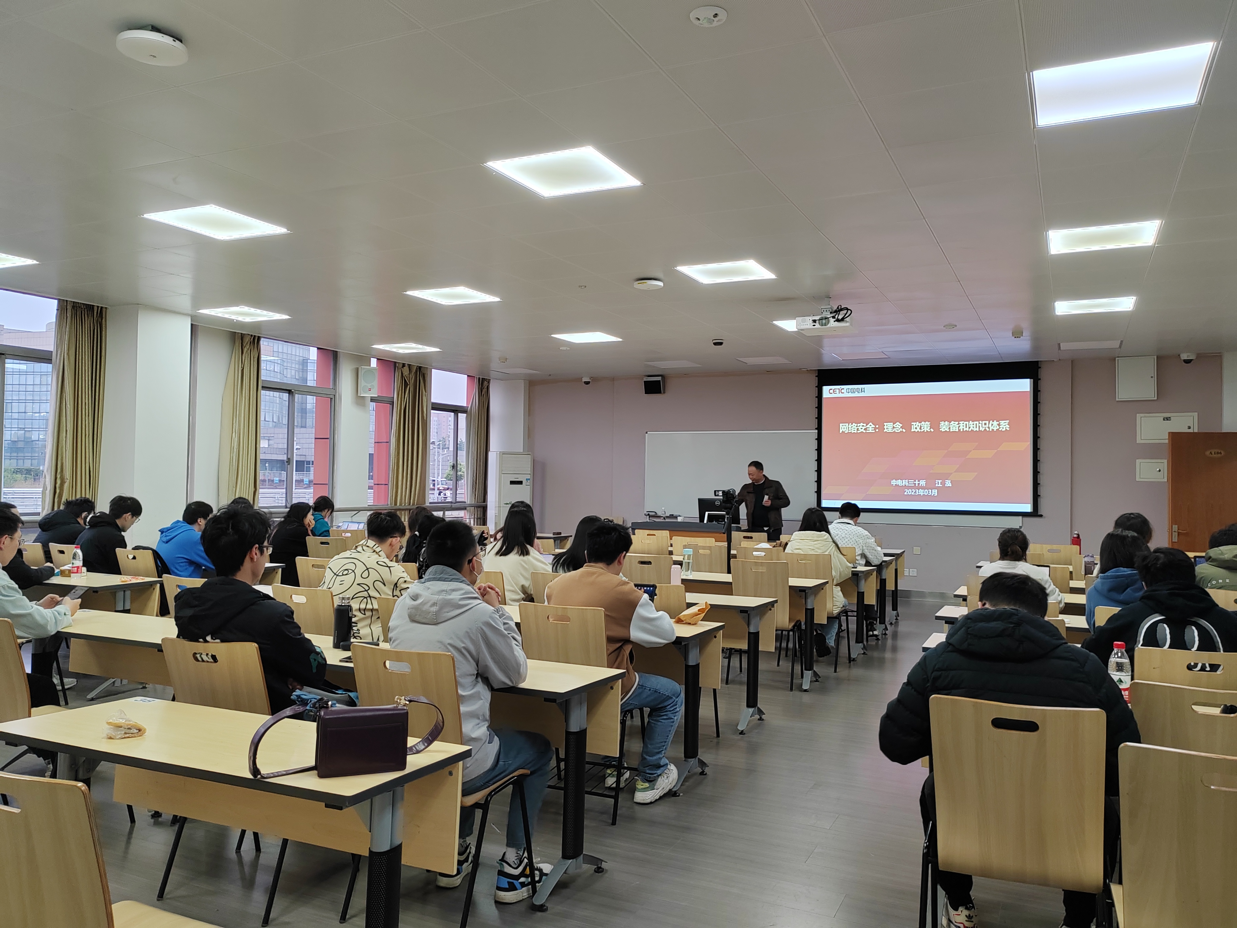 2023年3月20日上午,中国电子科技集团公司第三十研究所副总工程师江泓研究员为公司电子信息专业硕博士生开展了题为“网络安全:理念、政策、装备和知识体系”的专题讲座。本次讲座由英国上市官网365研究生科老师冀红云博士主持。