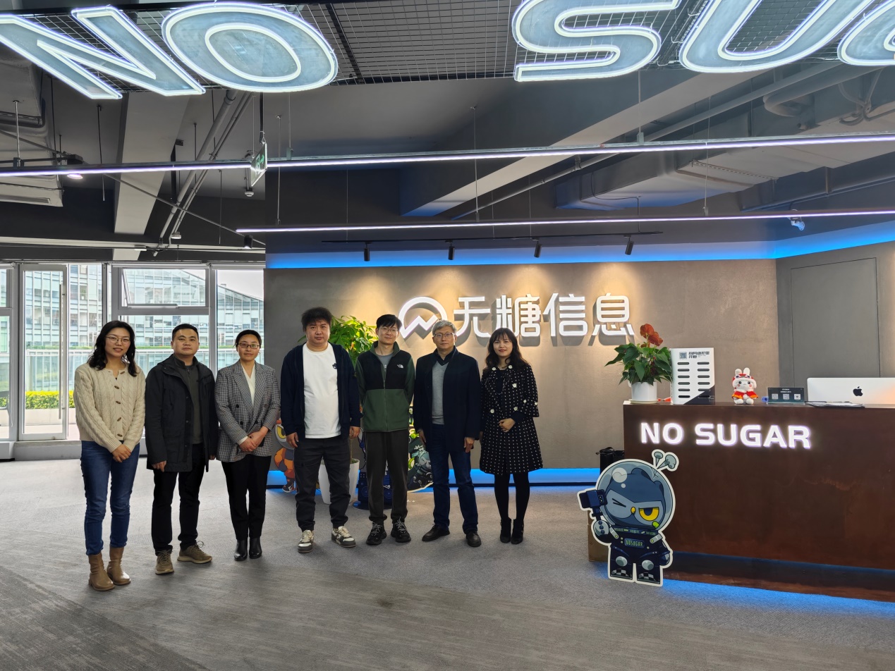 2023年3月22日下午,网络空间安全公司党总支书记秦燕、副经理杨频、副经理张意、实验中心主任刘亮、本科教学科科长何露以及公司团委书记隋文馨一行人前往无糖信息技术有限公司(简称无糖信息),开展访企拓岗工作。