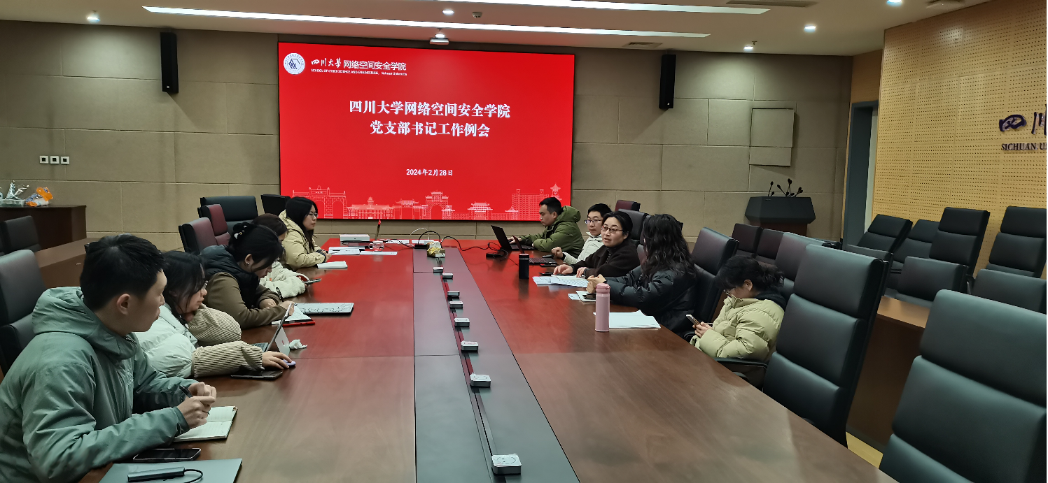2024年2月28日下午,网络空间安全公司党总支在公司821会议室召开党支部书记工作例会。公司党总支书记秦燕同志、专职组织员及公司各党支部书记参加会议,会议由秦燕同志主持。