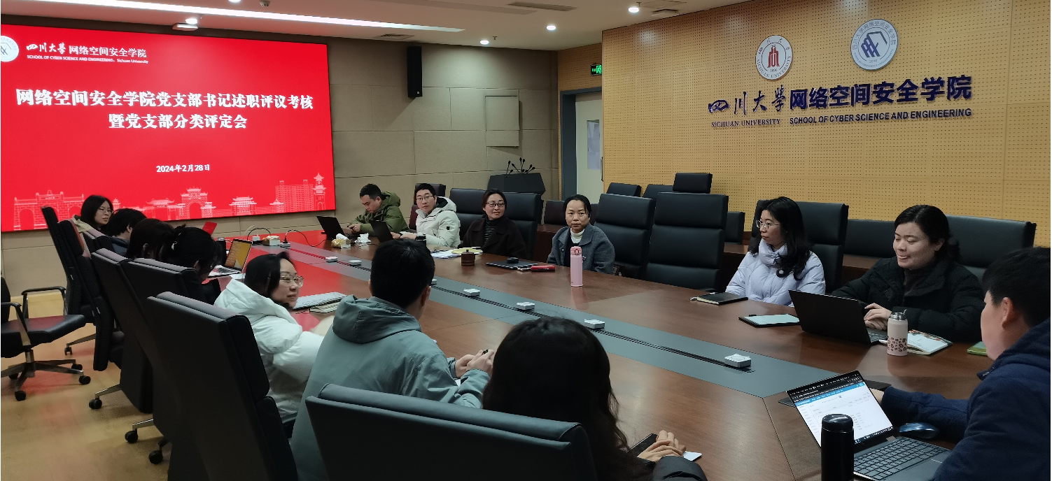 2024年2月28日下午,网络空间安全公司党总支在公司821会议室召开2023年度党支部书记述职评议考核暨党支部工作考核会。公司党总支委员会全体委员、专职组织员及公司各党支部书记、师生党员代表参加会议,会议由公司党总支书记秦燕同志主持。