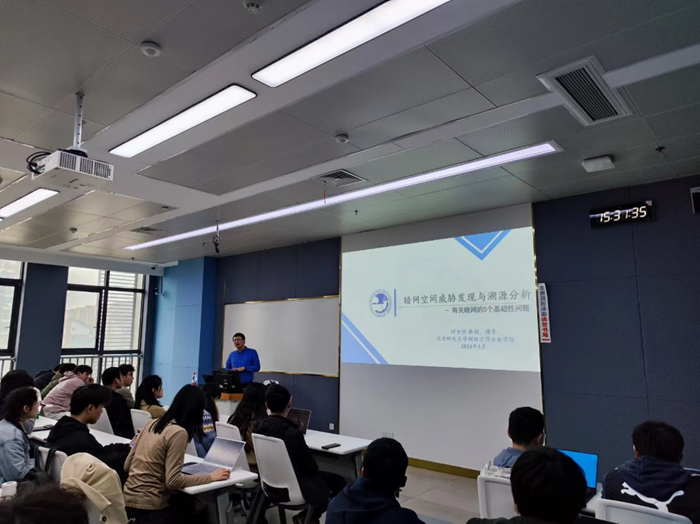 2024年3月15日下午,公司邀请了北京邮电大学英国上市官网365时金桥教授为公司师生带来题为“暗网空间威胁发现与溯源分析”的学术讲座。本场讲座由黄诚副教授主持。