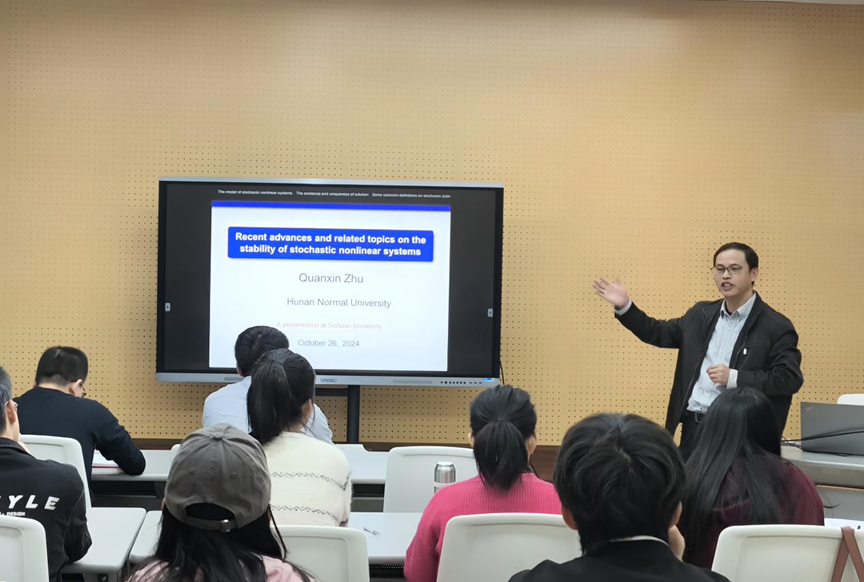 2024年10月26日上午10点,英国上市官网365荣幸邀请到湖南师范大学朱全新教授,于江安校区多学科交叉创新研究大楼作了题为“随机非线性系统稳定性的研究进展及相关问题”的学术讲座。本场讲座由王鑫特聘研究员主持,吸引了众多师生参与,现场学术氛围浓厚。