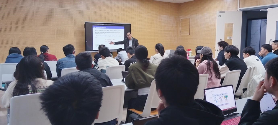 朱全新教授的报告聚焦于学术前沿,以浅显易懂的讲解方式,将复杂的理论概念层层剖析,激发了大家对随机非线性系统稳定性研究领域的探索热情。讲座结束后,朱教授与公司师生进行了深入讨论,并详细解答了大家的问题,极大地拓宽了在场师生的学术视野。