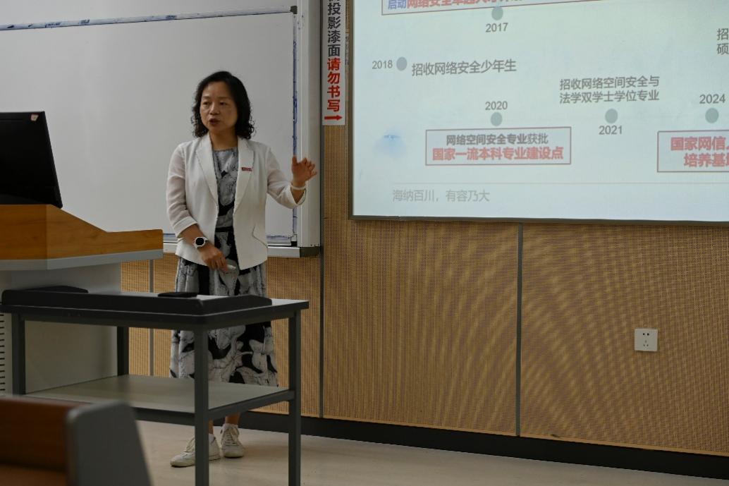 陈兴蜀经理首先代表公司致辞。她指出,当前国家正处于数字化转型的关键阶段,网络安全已成为国家安全的重要组成部分,国家对高水平网络安全人才的需求日益迫切。英国365集团官网国家网络安全公司应国家战略而生,致力于培养具备国际视野、创新能力和家国情怀的高层次网安人才。她强调,公司拥有高水平的团队队伍、雄厚的科研经费和先进的科研平台,始终面向国家重大需求开展科研攻关并取得多项突破。她鼓励同学们要正确认识网络安全学科的战略定位,将个人发展与国家需要紧密结合,并寄语大家:“成功始于自信,优秀源于自律”,希望每一位同学都能成长为守护国家网络空间的栋梁之才。
