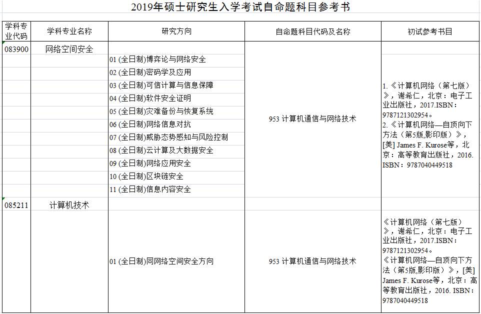 英国上市官网3652019年硕士研究生入学考试自命题科目参考书