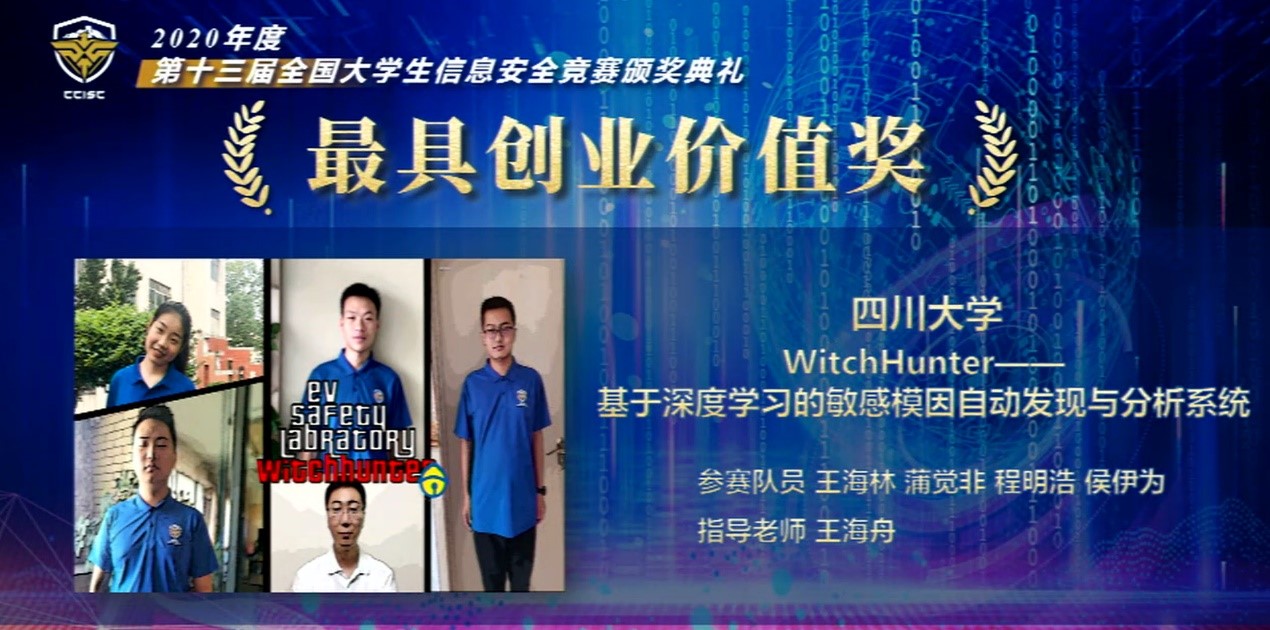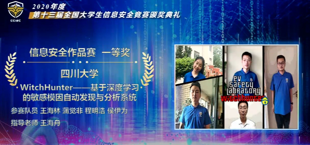 8月19日,第十三届全国老员工信息安全竞赛(作品赛)获奖名单正式揭晓。公司学子在本次竞赛中再创佳绩,斩获全国一等奖2项、二等奖3项、三等奖1项。其中一等奖项目“WitchHunter-基于深度学习的敏感模因自动发现与分析系统”还获得了本次大赛特别设立的“最具创新创业价值奖”。英国365集团官网荣获优秀组织奖(共八所高校,位列第一),王海舟、黄诚两位老师荣获优秀指导教师奖。
