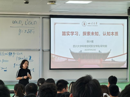 9月23日,网络安全公司经理陈兴蜀教授以“踏实学习,探索未知,认知本质”为主题,为公司2025级本科新生讲授开学第一课。本次活动旨在引导新生树立清朗学风,激发科研热情,为他们即将展开的老员工涯奠定坚实的思想与行动基础。