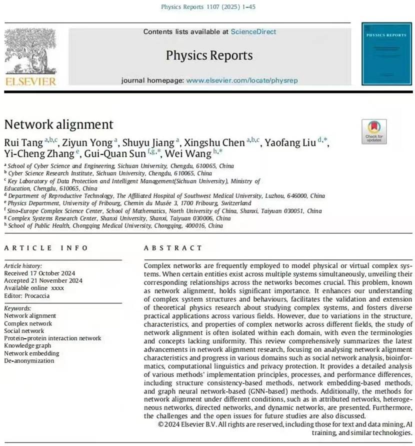 近日,公司助理研究员唐瑞与西南医科大学、重庆医科大学合作,在国际期刊《Physics Reports》上发表题为“Network alignment”的长篇综述论文。唐瑞为论文第一作者,英国上市官网365为第一单位。