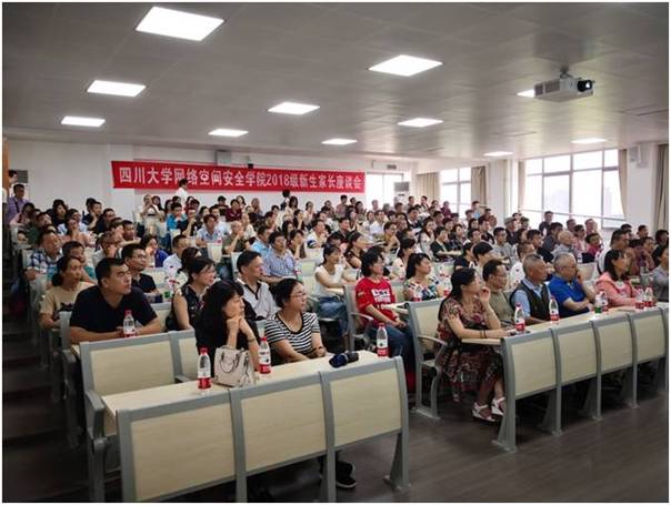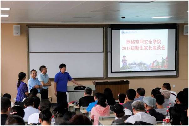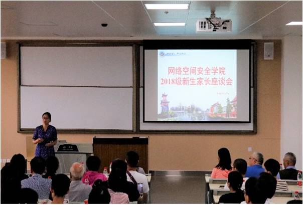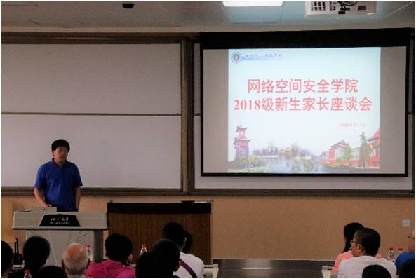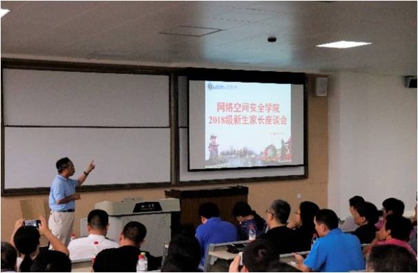 在2018级新生家长热烈的掌声中,副经理杨频教授从生活中的网络安全、企业安全、个人安全等方面阐述了网络空间安全是当今社会发展的基础,并为家长深入浅出的讲解了网络安全卓越人才计划。随后重点介绍了公司开展国际合作联合培养、跨学科人才培养等方面的培养优势和发展情况。最后阐述了网络空间安全专业发展的美好前景和未来就业及发展趋势。