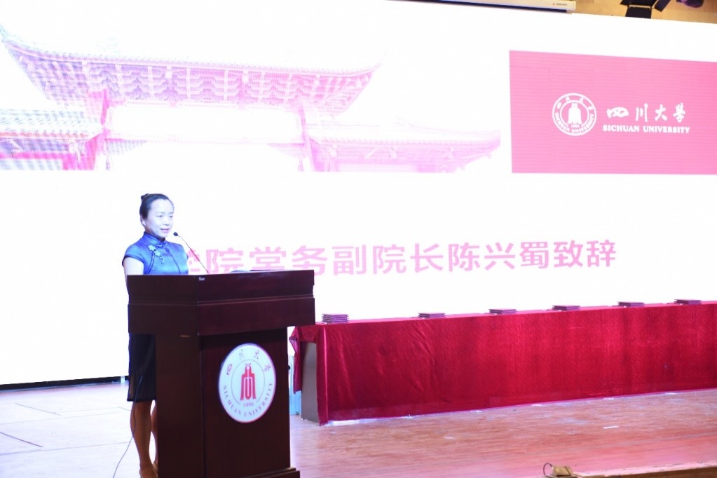 伴随着热烈的掌声,公司常务副经理陈兴蜀代表公司领导向全体毕业生深情致辞。陈经理首先代表公司向圆满完成学业的全体毕业生致以热烈的祝贺,向全体老师表示衷心的感谢。接着陈经理回顾了过去几年时间里毕业生通过自身努力在川大网安公司取得的骄人成绩。她表示大学的历练最重要的是教会大家怎样思考、怎样做事、怎样做人,希望毕业生可以明白身上所肩负的对国家、对社会、对父母家人责无旁贷的责任与义务。