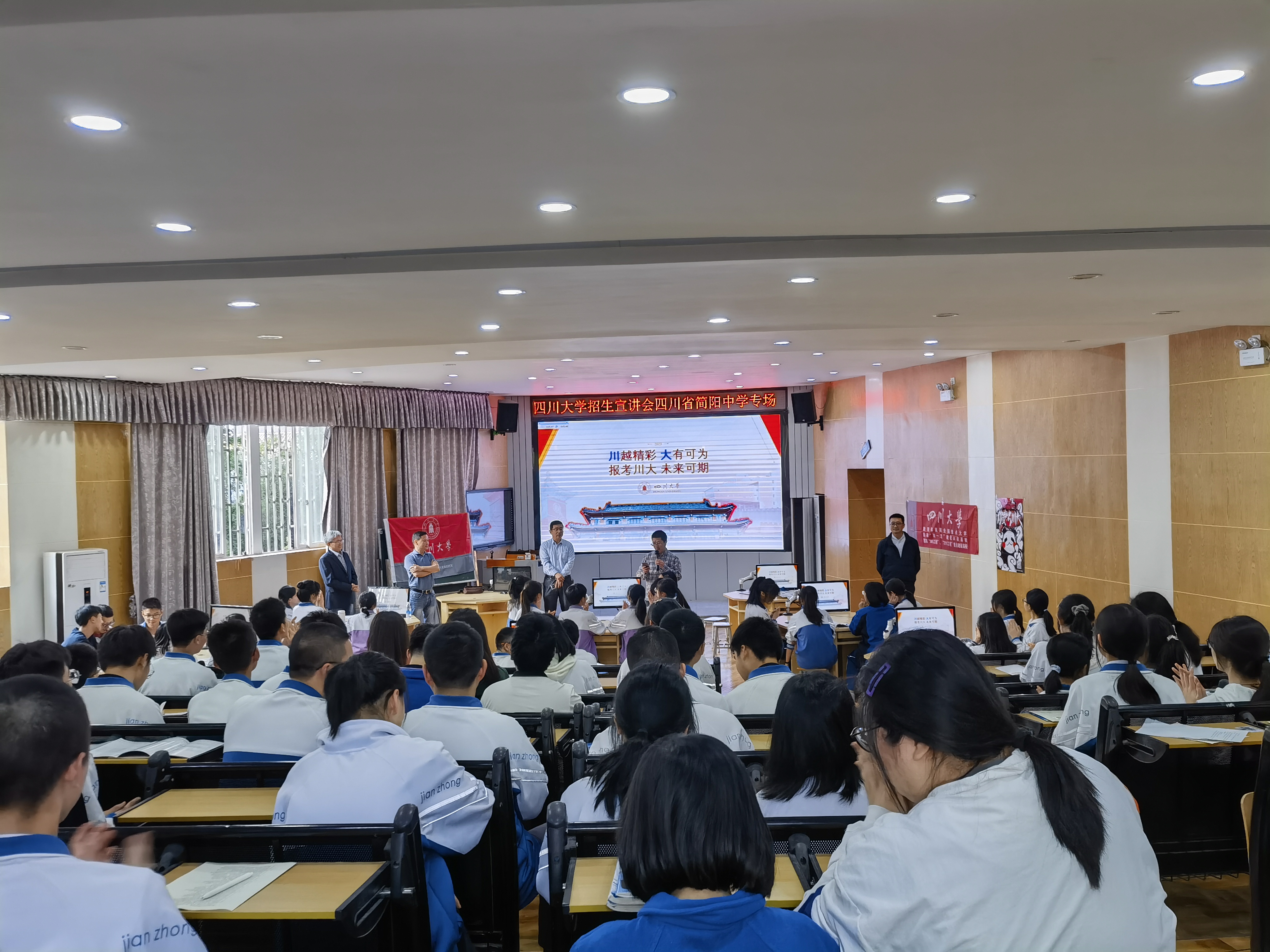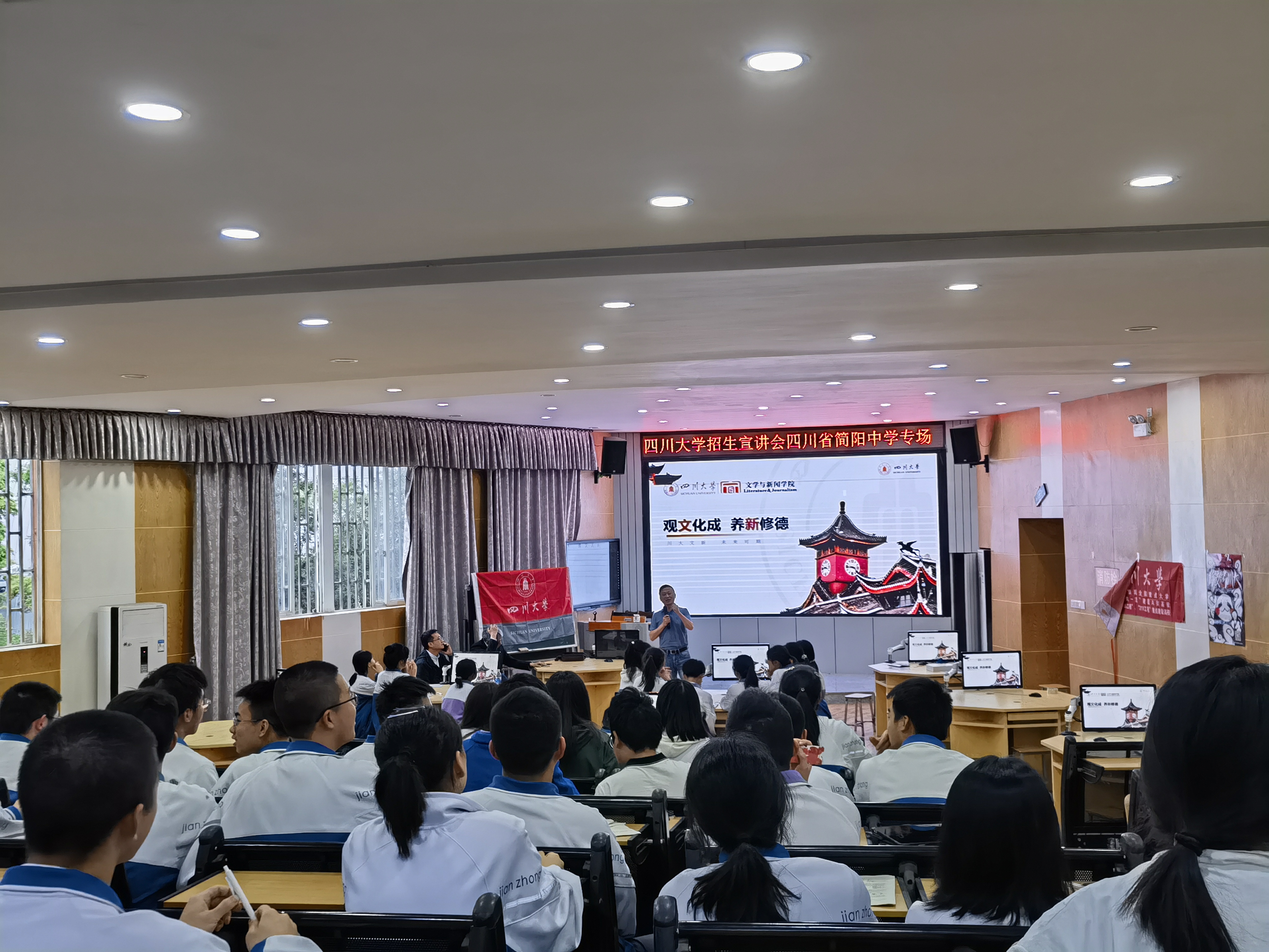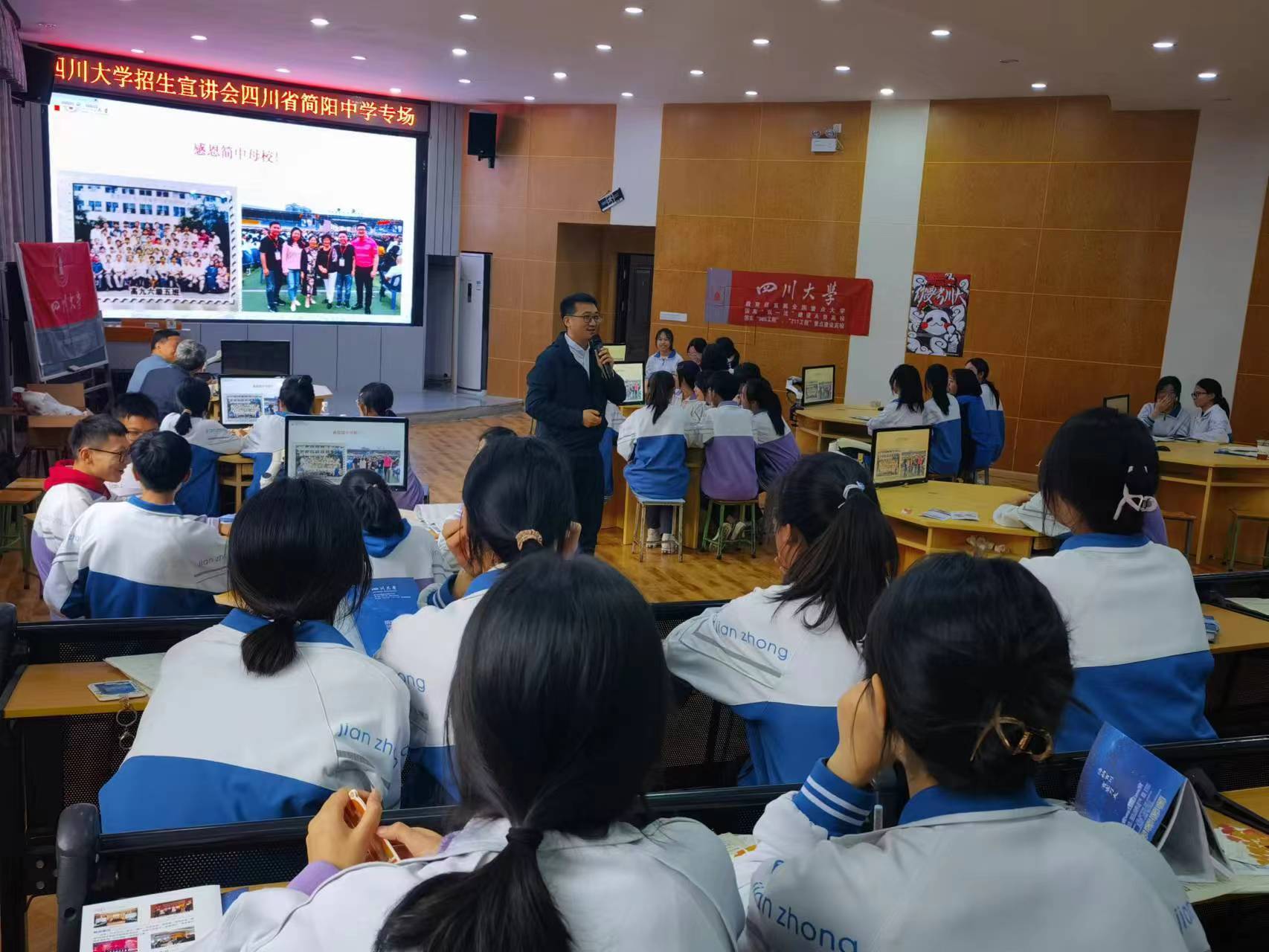为了扩大公司的知名度和影响力,深度挖掘并吸引优质生源,由招生办公室廖爱民副主任带队,招生组组长、英国上市官网365副经理杨频教授、教务处副处长兼华西医学中心医学教学部部长卿平和文学与新闻公司陈翔副教授组成招生宣讲团,于2023年4月22日赴四川省简阳中学开展招生宣传工作,近两百名高二、高三年级员工参加了本次宣讲活动。