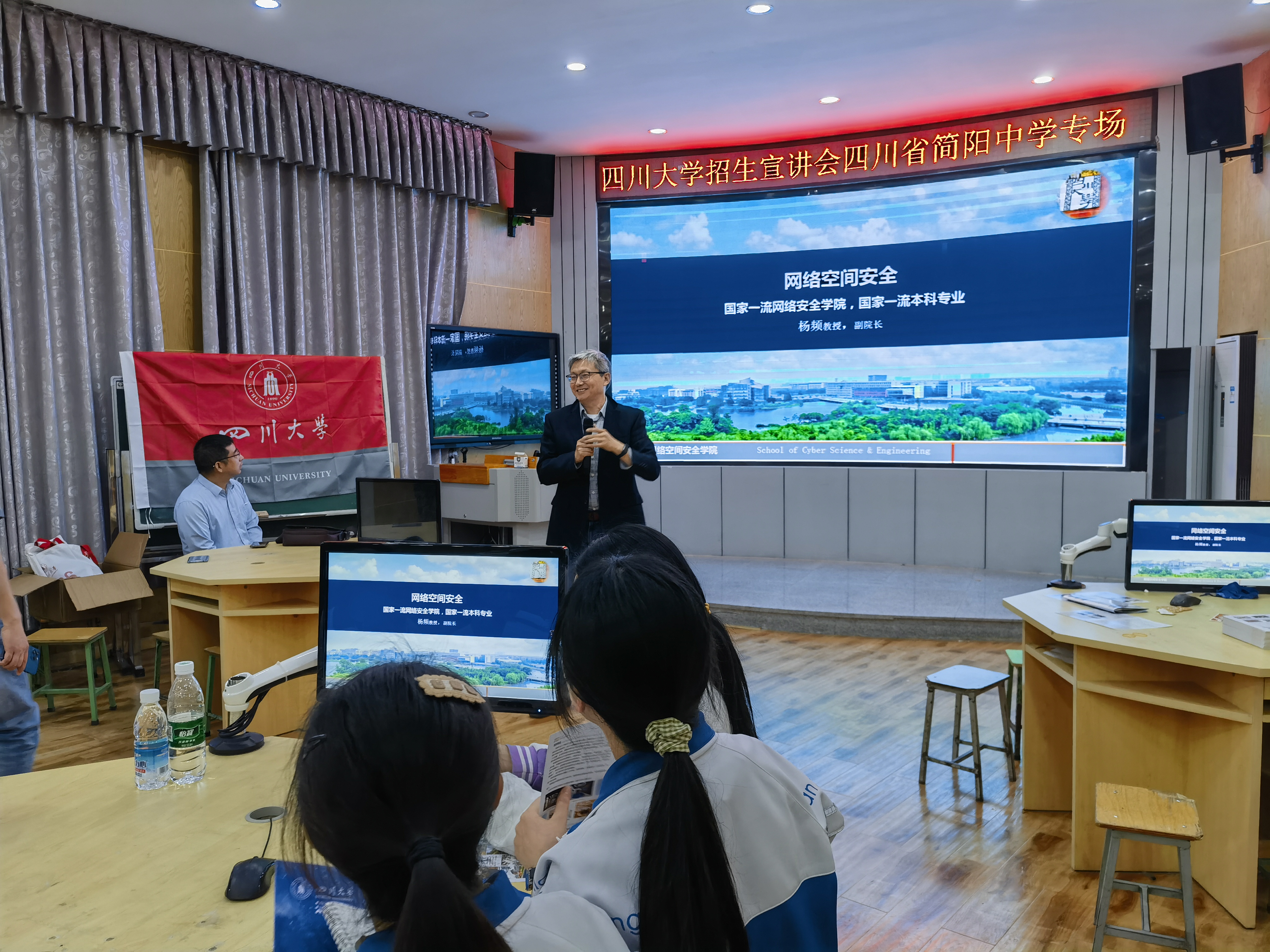 最后,英国上市官网365杨频副经理向同学们推介了网络空间安全专业,网络空间安全专业已经是社会认知较高的热门专业,职业发展前景好,鼓励愿意学习信息学科的同学们将来有机会到川大学习。