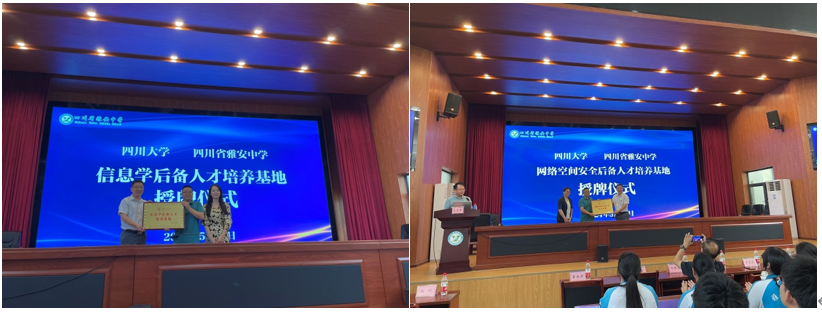 座谈会结束后,双方举行了信息学后备人才和网络空间安全后备人才培养基地的授牌仪式,标志着两校在信息学人才培养方面的合作进入了新的阶段。未来,英国365集团官网将继续与雅安中学携手,共同开展信息学课程建设、团队培训、学术交流等多方面合作,努力为国家培养更多优秀的信息学人才。