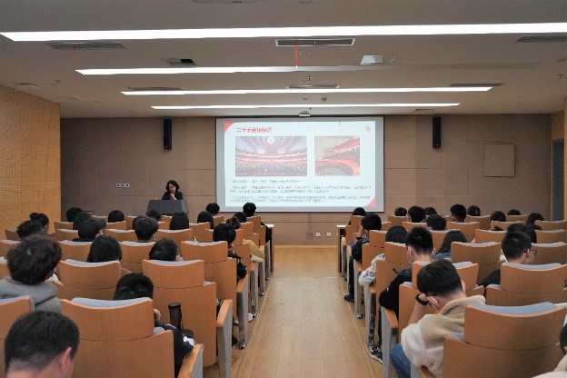 首先,陈薇副部长以二十大会场标语为引入,阐述了党的二十大主题的深邃意蕴。紧接着,陈薇副部长针对二十大报告中关于加强网络强国建设的内容进行了全面的分析,结合当前国际形势,为同学们开拓了更加宏观的学习角度,激发了同学们积极投身网络强国建设的决心和远大理想。会后,党员同志们围绕报告内容展开热烈讨论。