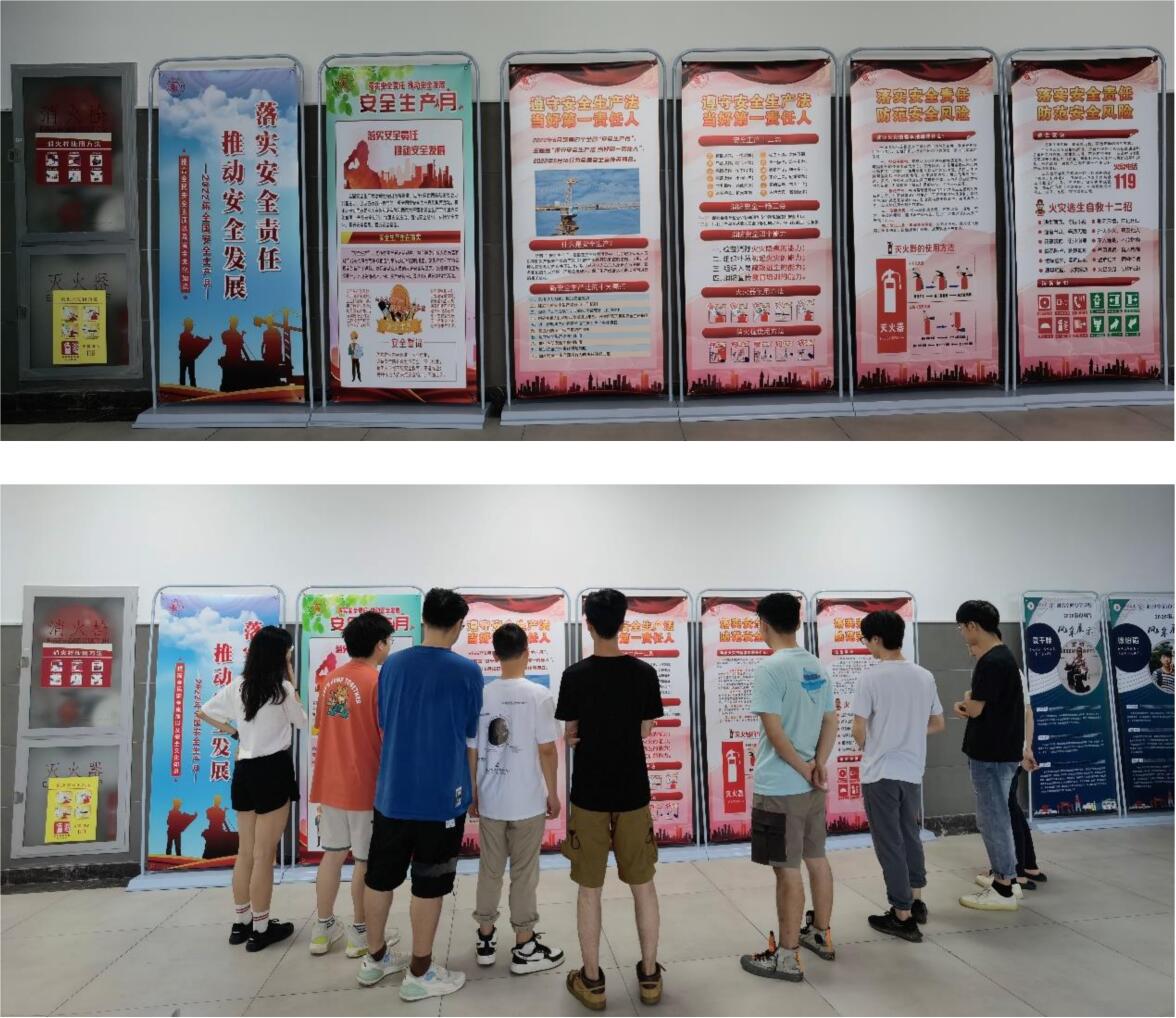 (4)公司从6月5日起,开展“安全宣传咨询日”和安全宣传“五进”活动,提高安全意识,培养广大师生安全应急能力,防风险、除隐患、遏事故,进行展板宣传学习与教育,营造出浓厚的安全生产氛围。通过宣传展板的方式,将安全知识传播给公司师生,进一步强化员工日常安全教育管理工作,切实提高公司师生的安全防范意识和应急处理能力。